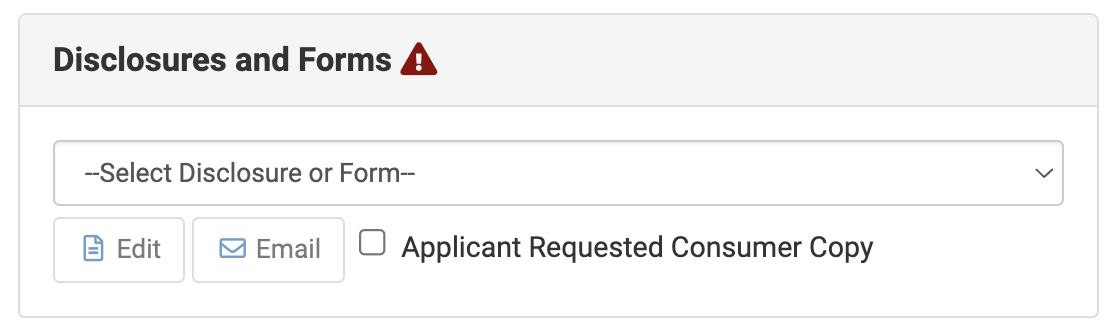 NOTE: To send disclosures via email the applicants email must be listed on their profile. If you did not enter at order time then click the EDIT APPLICATION INFORMATION button to enter their email address.